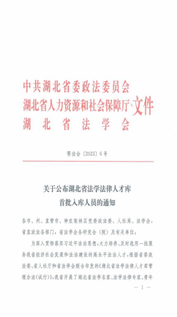 本网讯(文/图 郑实)近日,中共湖北省委政法委员会、湖北省人力资源和社会保障厅、湖北省法学会联合印发《关于公布湖北省法学法律人才库首批入库人员通知》,我校Beat365官方网站安军博士入选湖北省青年法学法律人才,成为首批入库人员。