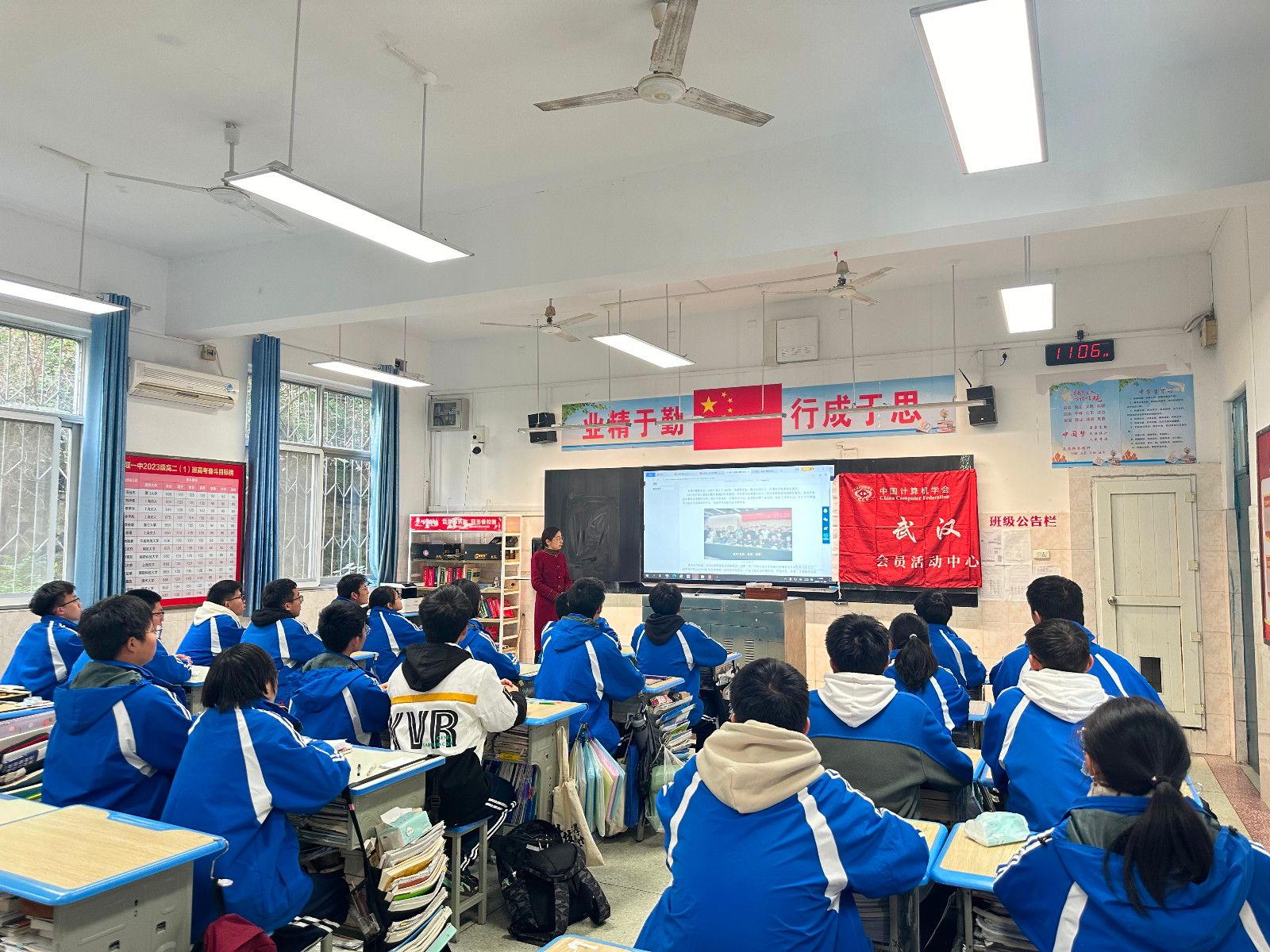 黄永昌为十堰市一中高二(3)班同学带来一堂主题为《学习贯彻党的二十届三中全会和全国教育大会精神 推进教育事业高质量发展》思政课。陈宇峰为高二(1)班学生做了一堂《前沿智能技术之智能网联汽车》精彩报告。课堂上精彩纷呈,掌声不断。